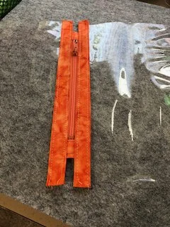 Make zip tab ends about 2X2” or larger; fold ends to center and press. Sew onto each end of your zipper. Cut excess fabric of tabs along side of zipper.